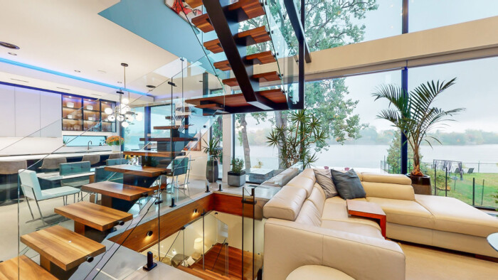 Cette construction neuve a été surnommée par notre équipe "la maison de verre". Située sur la rive sud de l'Ile Bizard, cette majestueuse résidence a été pour nous l'un des projets les plus toniques de notre palmarès.
