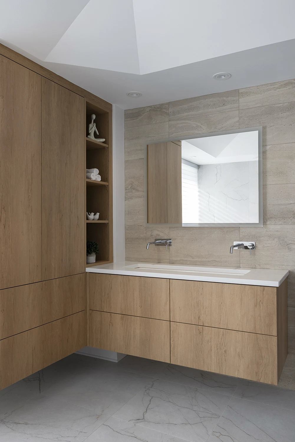 Ce projet de rénovation majeure a permis de transformer en profondeur un condo situé dans le complexe en copropriété de luxe, Tropique du Nord à Montréal et d’en augmenter significativement la valeur grâce à une refonte complète des espaces principaux
